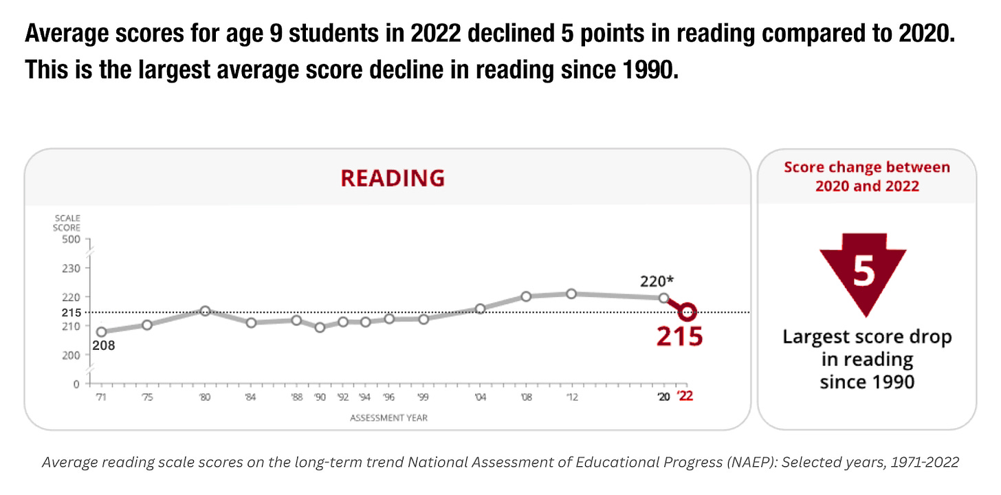 Our reading levels, after reaching record highs in the 2010s, have seemingly fallen back to where they were in ~2004 and ~1980. The gains we have made over recent decades are now quietly slipping away. (1)